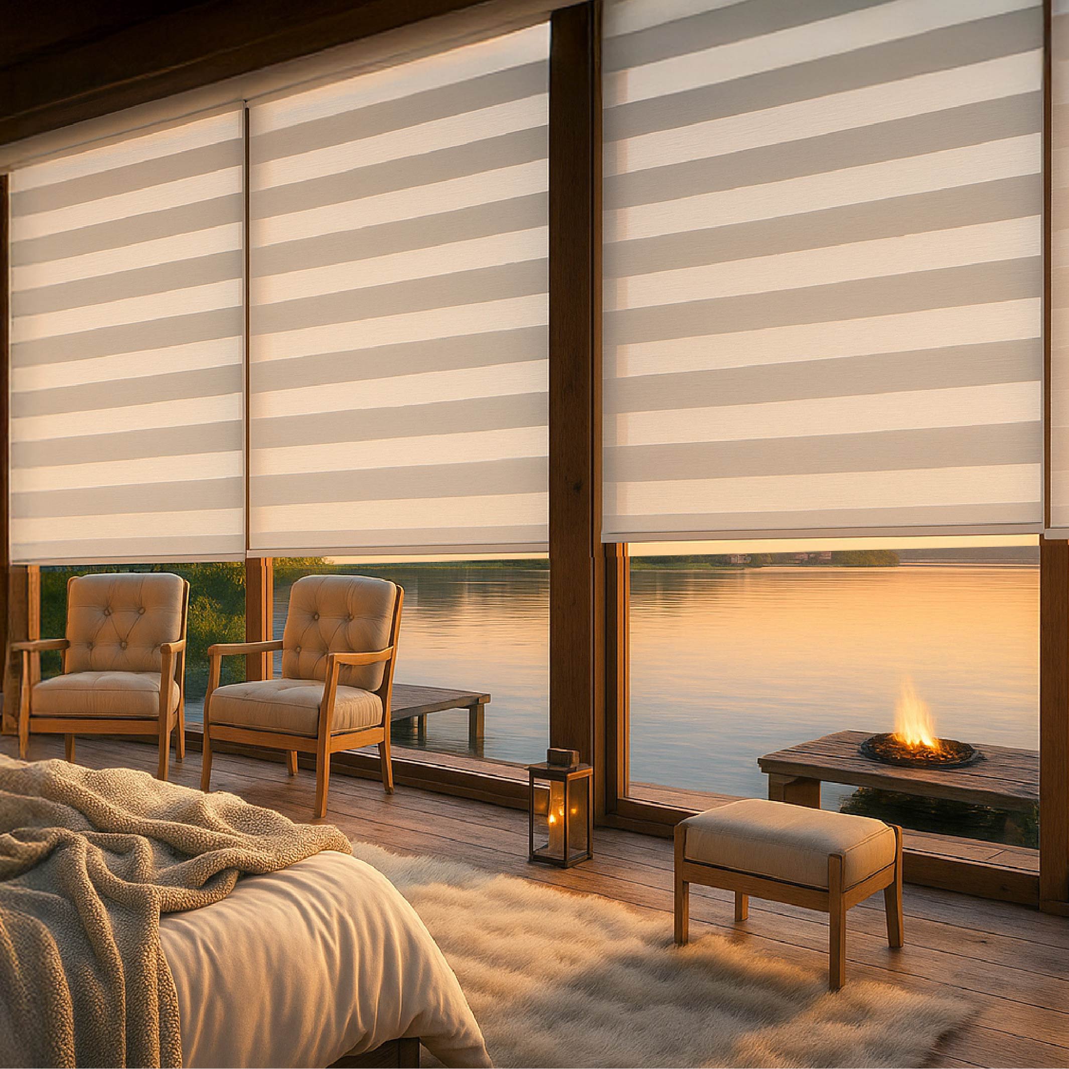 Cortina de Tela Blackout Beige + Velo Vincenzi 140x220